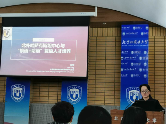 我校哈萨克斯坦研究中心主任孙芳副教授做了题为“北外哈萨克斯坦中心与‘俄语+中亚语’复语人才培养”的主题报告,介绍了我校哈萨克斯坦研究中心的建设情况及现有科研成绩,并就中心的未来发展规划与到会专家进行了交流