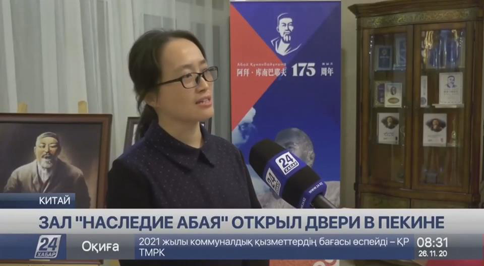 活动结束后,孙芳老师受到哈巴尔-24电视台记者采访,介绍了我校学生对阿拜的了解,宣传了我校哈萨克斯坦中心和哈萨克语专业建设的情况,并表达了希望加强双方文化交流的意愿。