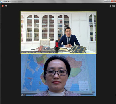 在视频连线中,孙芳老师向对方详细介绍了北外哈萨克斯坦中心的工作和成人影院 “俄语(复合哈萨克语)”专业人才培养的情况。哈方记者Жарқынбек Жүмаділ先生对我校哈中心参与多次阿拜纪念活动表示感谢,高度肯定了哈中心在两国文化交流方面所做的工作,并提出可在图书资料方面与哈中心开展进一步合作。