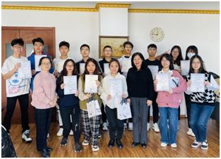 为鼓励中亚语专业同学的学习积极性,成人影院 院长戴桂菊教授、哈萨克斯坦中心主任孙芳副教授为参加书法比赛的2020级复语班全体同学颁发了奖状和奖品,肯定了同学们近三个月的学习成果,并祝愿同学们在接下来的学习过程中再接再厉,取得更大进步。
