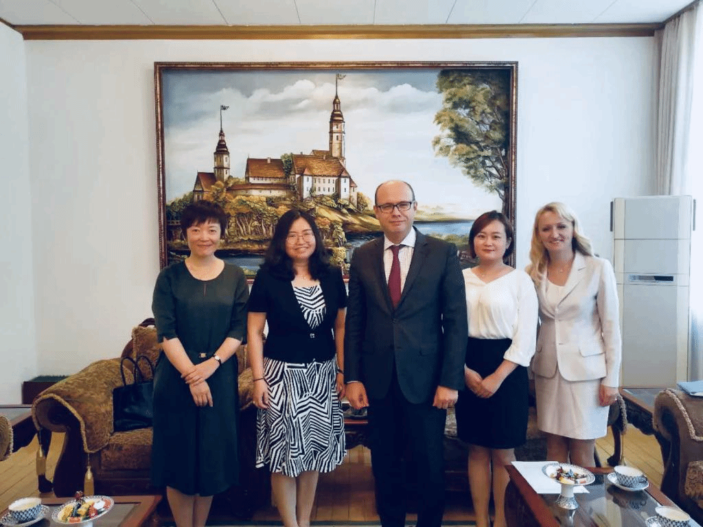 院长黄玫、副院长何芳等一行,于2018年9月5日拜访白俄罗斯共和国驻华大使馆,并与白俄罗斯共和国驻华特命全权大使鲁德·基里尔就加强语言教学合作等问题进行了交流。