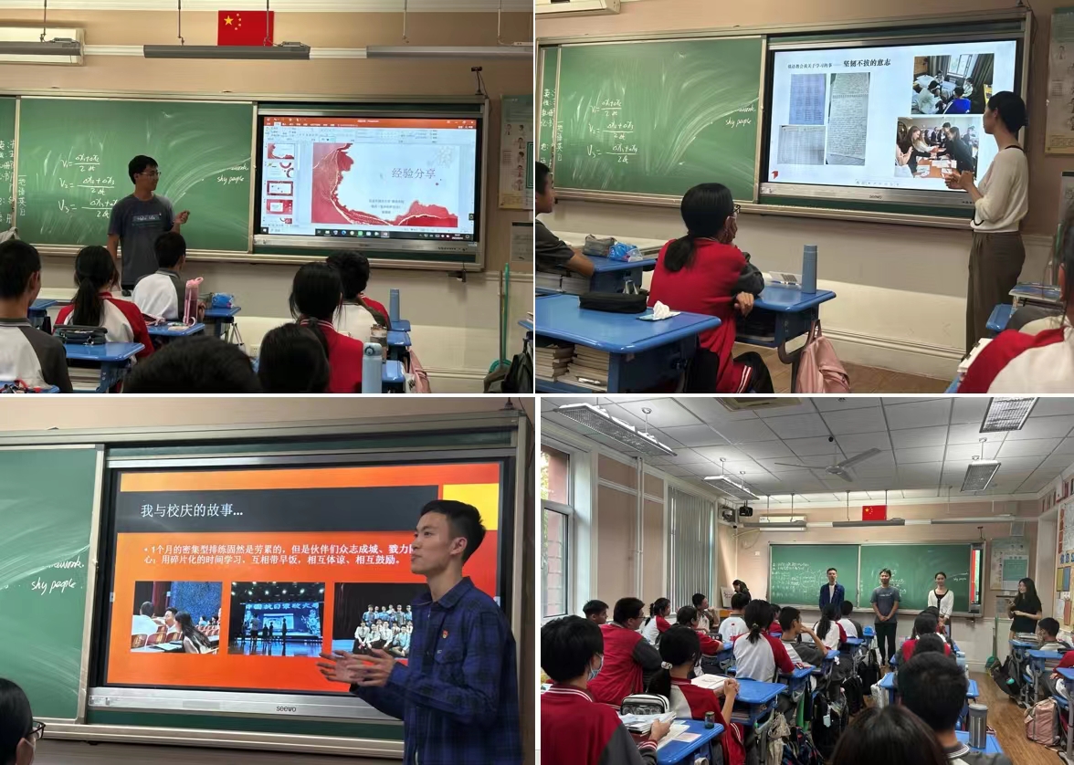 本科生党员4名代表为北外附中复语班同学做经验分享。活动围绕大学生与中学生共同关注的语言学习、留学经验、生涯规划等话题展开,谢璐骏、陈子昀、陈纪言三位结合个人学习和成长经历,畅谈心得体会。分享会内容充实,气氛活泼,中学生们踊跃提问参与互动。