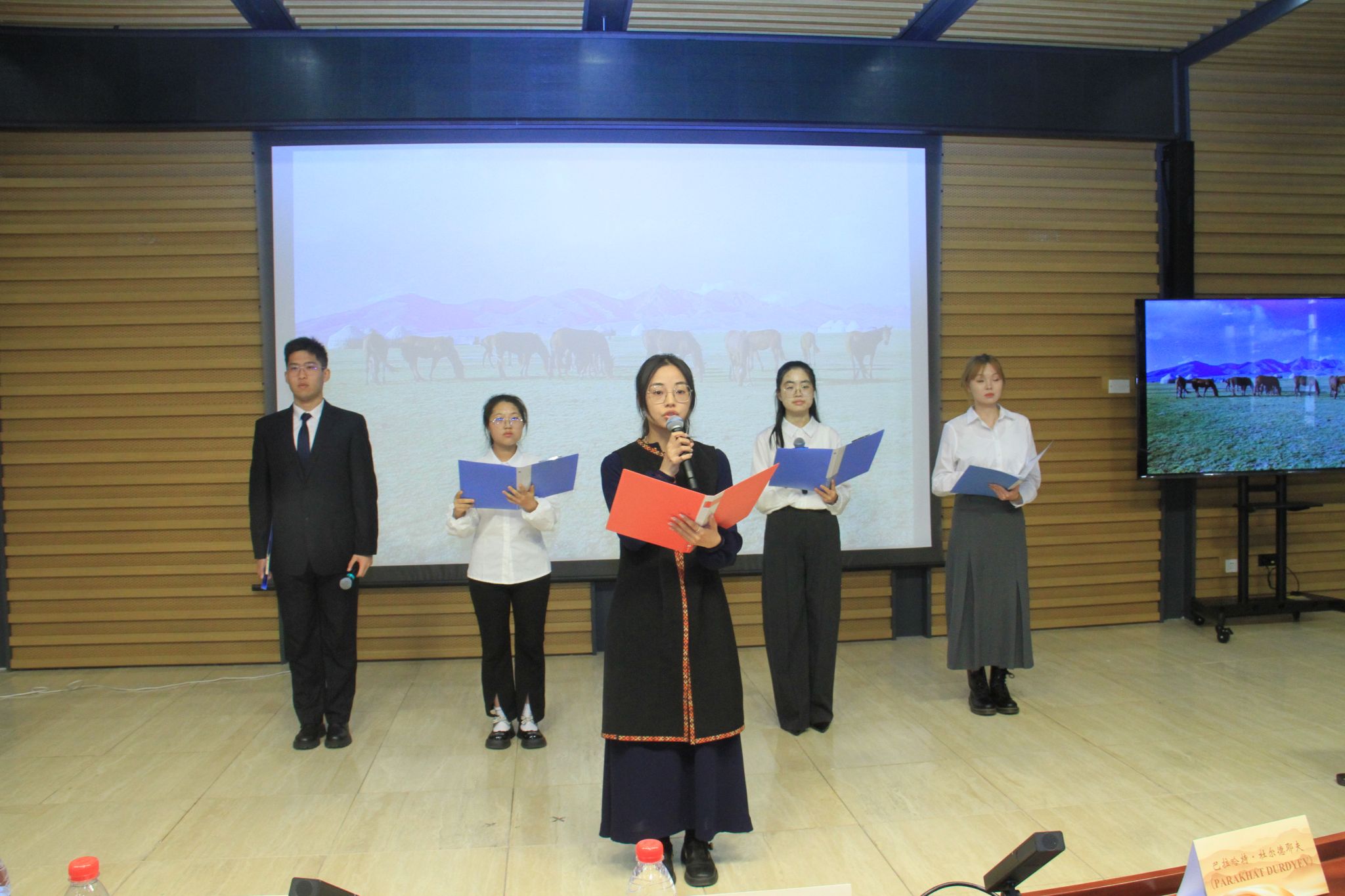 学生朗诵队现场朗诵了《诗集》中的两首代表作《在心上人的花园里》和《土库曼斯坦的未来》,赢得现场热烈掌声。