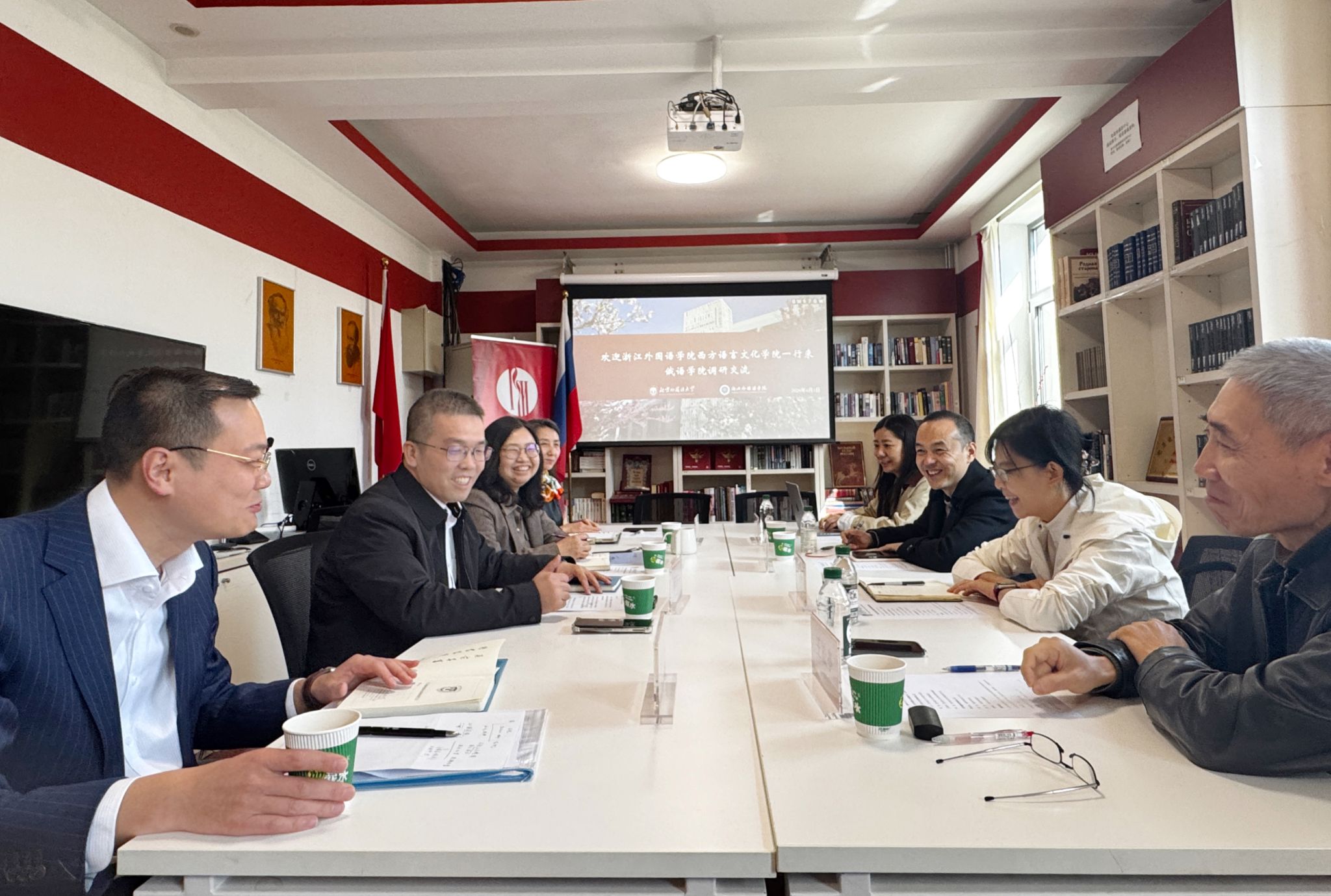 交流中,双方达成初步合作意向。在区域国别研究方面,拟联合发起“斯拉夫及中亚研究智库联盟”;在国家重大课题申报上,浙外全职特聘教授王松亭分享古罗斯编年史翻译研究成果,双方探讨联合申报课题的可行性;在一流专业建设上,双方就“理解当代中国”多语种教材编写使用进行了探讨,强调将课程学习和国情调研相结合,计划开展“走进浙江”两院学生联合暑期社会实践活动。此外,双方就产教融合、社会服务与国际会议举办交换了意见。