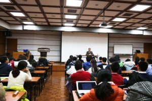选修形势政策课程的本科生及北外附中部分师生听取了讲座,会议室中座无虚席。报告会由成人影院